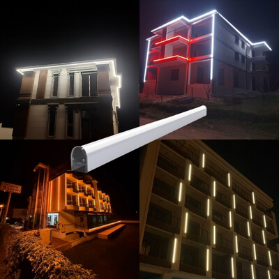 Cephe aydınlatma için geliştirdiğimiz Lineer LED lamba ürünlerin kasası alüminyumdur. İçerisindeki PCB bar LED de alüminyumdur. Çiplerden çıkan ısı alüminyum iletkenliği ile en dışa kadar gönderilir. Dolaysıyla istenmeyen ısı bu yolla atmosfere transfer edilir. Yüksek sıcaklığa maruz kalmayan ürün ilerleyen yıllar için dayanıklı aydınlatma sunar.