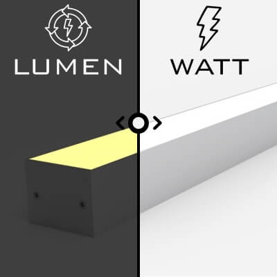 Elektrik ile çalışan tüm cihazlar bir tüketim yapar. Bu tüketim değeri ise Watt ile ölçüler. Watt değeri akım (Amper) ile gerilim (Volt) değerinin çarpılması ile elde edilir. Örneğin sabit gerilim 24V DC elektrik ile çalışan bir LED armatür 10W gücünde ise 0,4 A akım çeker. Lümen ise aydınlatma değeridir. Farklı iki marka olduğunu ve ikisinin etiketinde 10W güç yazmakta olduğunu düşünün. Bu her iki armatürün de aynı Lümen değerinde ışık vereceği anlamına gelmez. Lümen değeri ise ortamda Lux olarak sonuçlanır. Daha detaylı teknik bilgiler için Watt (Güç) Nedir?, Işık Akısı (Lümen) Nedir? ve Aydınlatma Seviyesi (Lux) Nedir? isimli yazılarımıza göz atabilirsiniz.