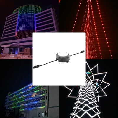 Dotled ürünleri kendinden kablolu ve içerisinde ledlerin dizili olduğu yuvarlak bir PCB karttan oluşur. Kart üzerindeki ledler 1 piksel demektedir. DMX512 protokolü ile bu pikseller kontrol ederiz. Böylece led animasyonlar ile hareketli cepheler elde edersiniz.