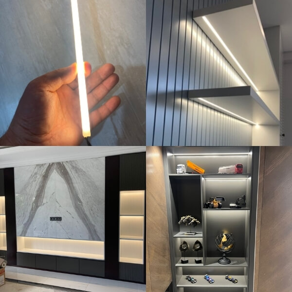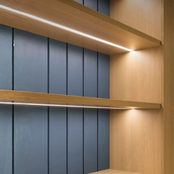 Finesse idéale et adaptation parfaite pour l'éclairage d'étagère.
