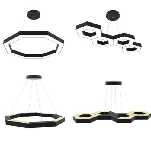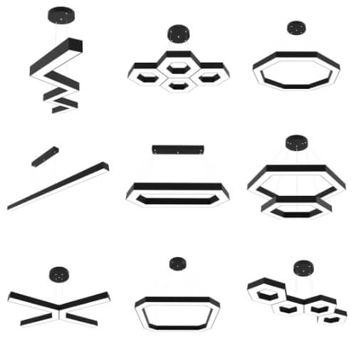 Notre gamme de lustres LED en gros comprend des suspensions, des lustres en saillie (à fixation directe au plafond) et des lustres à double éclairage (vers le haut et vers le bas). Ces modèles sont disponibles dans une variété de coloris pour la lumière et le boîtier. Nous vendons directement du fabricant. Nos lustres standards s'adaptent à presque tous les espaces de vie.