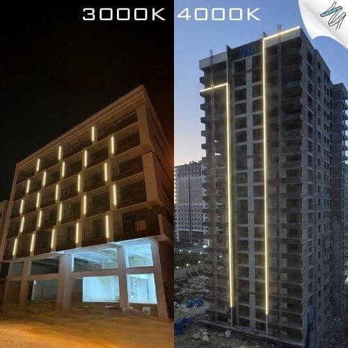 Günışığı aydınlatma doğal parlaklığını ve sıcaklığı ile mimari yapıları daha davetkar hale getirir. İnsan odaklı aydınlatmadır ve modern mimari tasarımlarında en çok tercih edilen referans ışık kaynağıdır. 3000K huzuru temsil ederken 4000K ışık daha ciddi bir hava ile karışımıza çıkar. Bu renkler sayesinde cephe kaplamalarının dokusunu ve renklerini daha doğru bir şekilde algılarsınız. Ayrıca sade ve şık görünümü ile yapının estetik kimliği de güçlenir. Işık otel, alışveriş merkezi veya konut projeleri gibi kamusal alanlarda geniş bir kullanıma sahiptir.